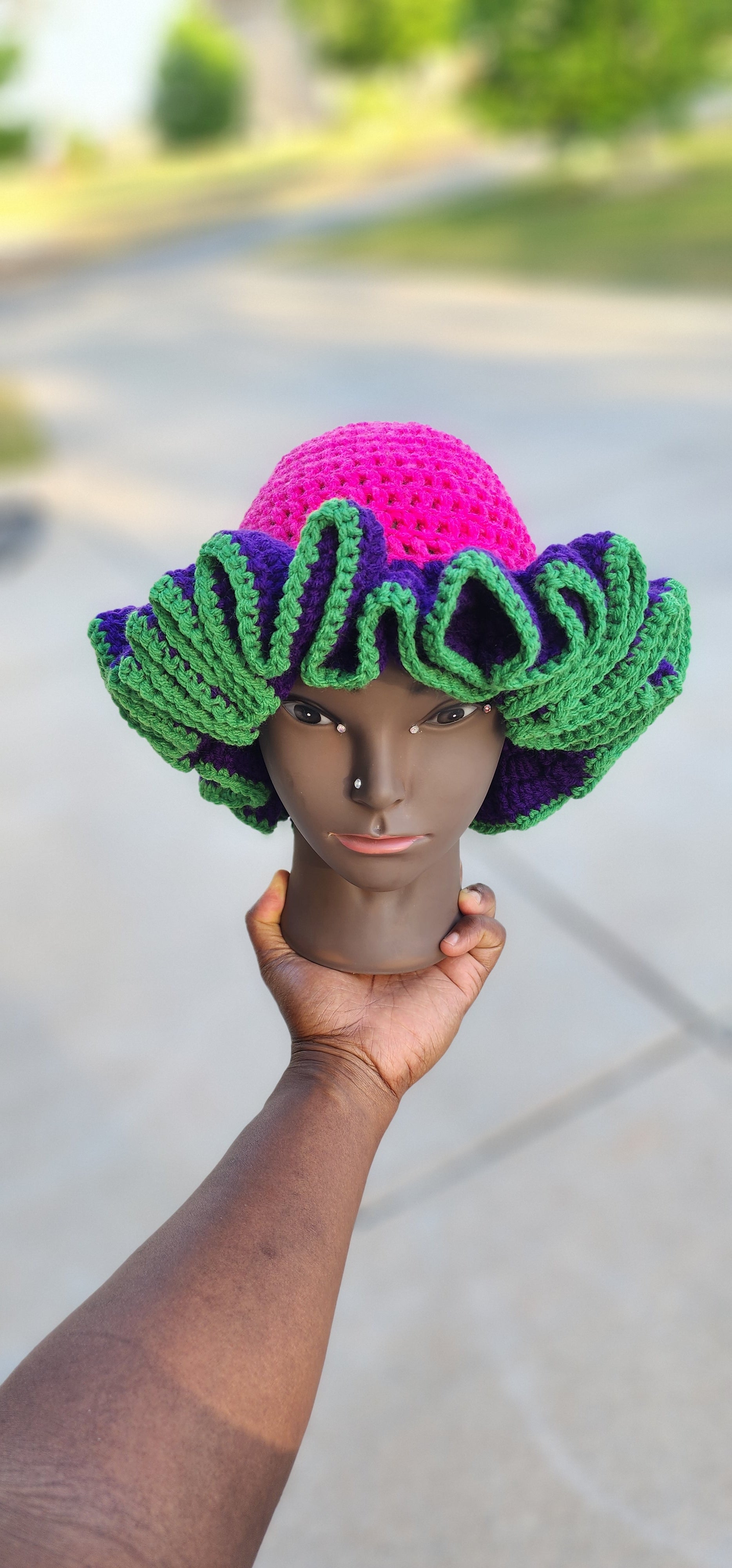Discover the charm of our handmade ruffle crochet hat, a delightful accessory